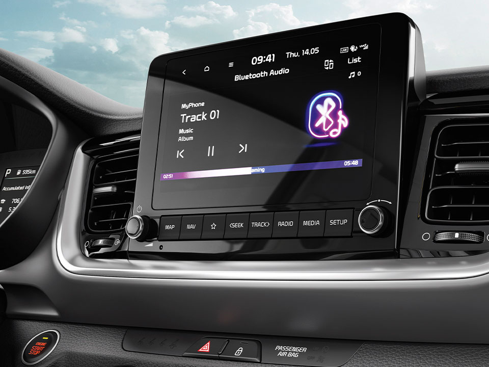 • Kia-Kartennavigation mit Bildschirmdiagonale 31,2 cm (12,3 Zoll), inkl. 2 "Over-the-Air"-Updates² und 7-Jahre-Kia-Navigationskarten-Update